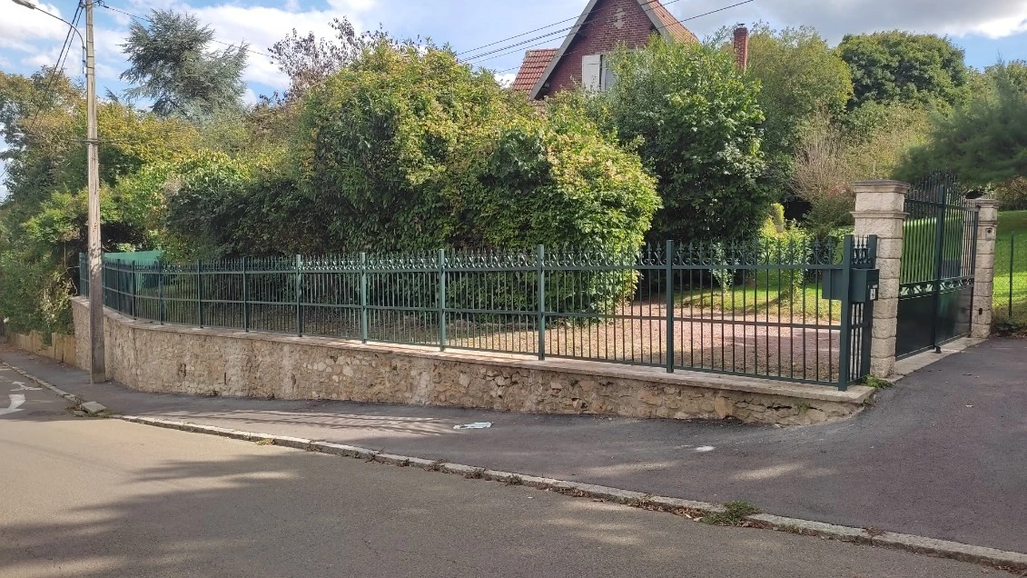 Réalisation d'une belle clôture aluminium posée sur muret par intervention corottage, scellement béton, finition teinte sable. Cloture Style Traditionnel de notre fournisseur JERREL.