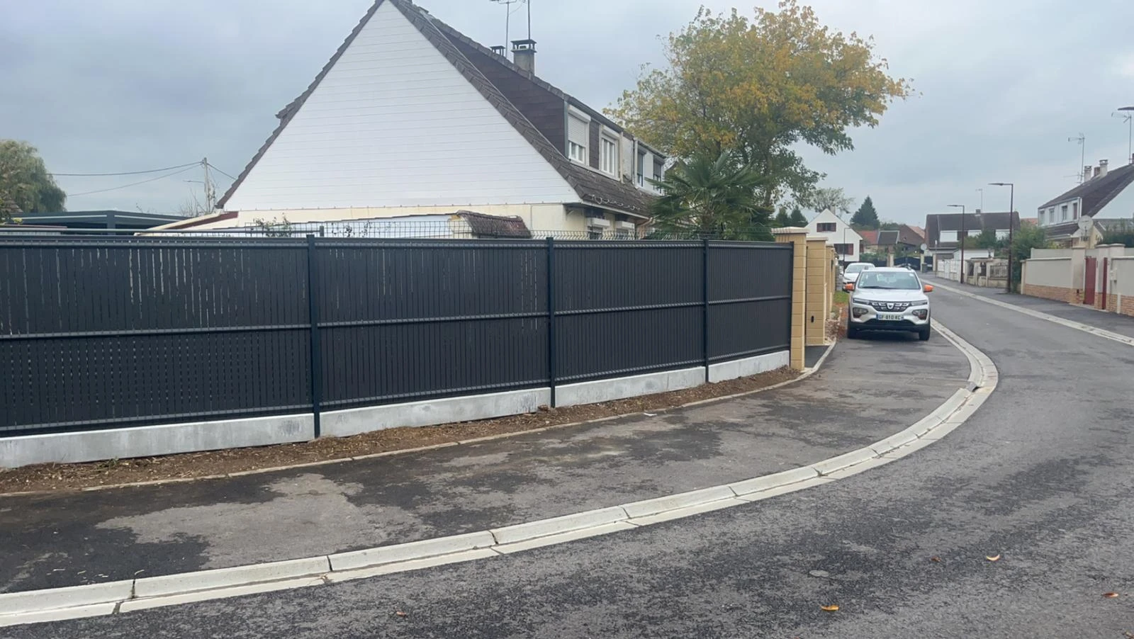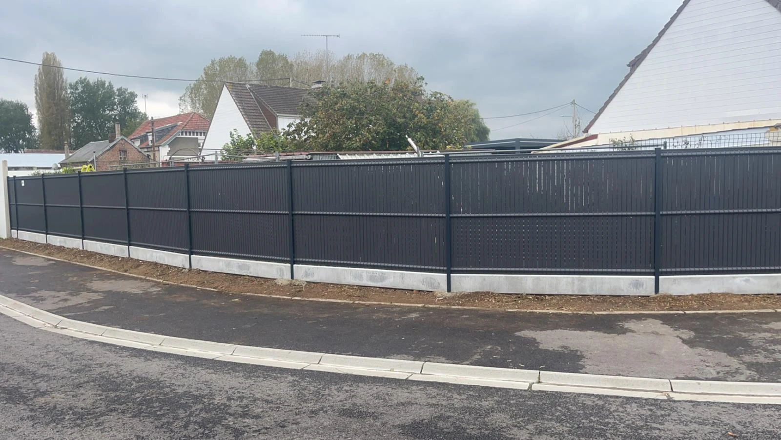 Cloture rigide ral 7016 gris avec sous bassement béton chaperonné et occultant PVC gris sur la commune d'APPILLY dans l'Oise