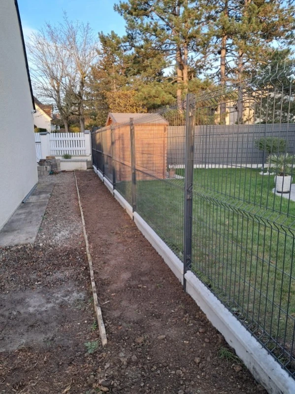 Réalisation d'une clôture rigide 153 avec sous bassement de 25 cm sur Choisy au Bac.